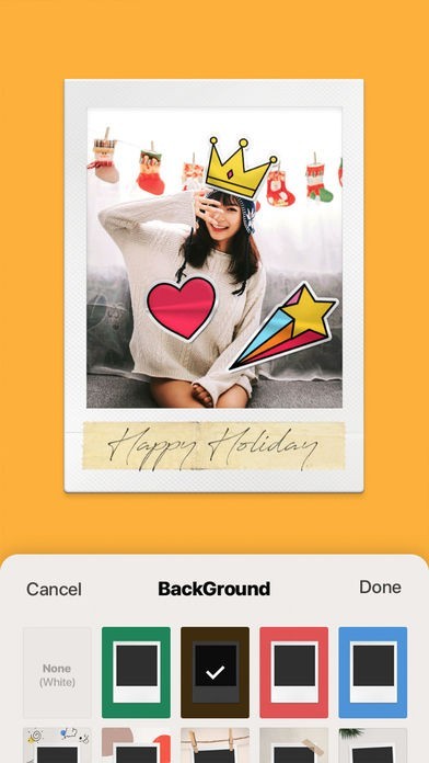 11個のフィルムが搭載されており、フィルムの背景も7つあるので、写真の雰囲気に合わせて変更することができます。簡単にポラロイド写真で撮ったように撮影ができます。