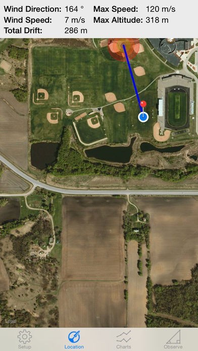 このアプリはロケットのタイプやパラシュート、エンジンを指定した後、現在の気象データと照らし合わせて落下予測地点を計算します。風量や風向が読みにくい状況において特に力を発揮してくれるはずです。