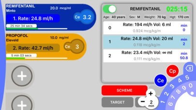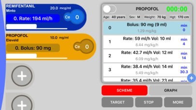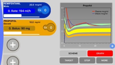 App Storeより引用iTIVA is a PK/PD simulation App that provides information about distribution of drugs based on mathematical models, and it simulate the behavior of a TCI (Target controlled infusion) pump, calculating infusion rates to reach and maintain a set target effect site concentration. Those schemes can be implemented in volumetric infusion pumps and be guided with pharmacokinetics models