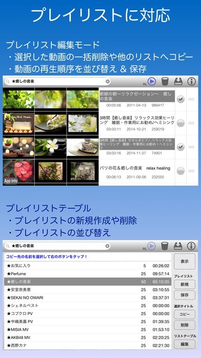 時間の少ない社会人は手間を嫌うこともありますが、単体のYouTubeプレーヤーとしても役に立つため、使用アプリの一元化が実現します。最大100タイトルのリスト表示や重複なしの履歴保存など検索機能にもこだわりがみられ、ユーザー目線の便利機能が魅力です。
