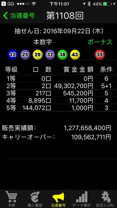 ロト6の予想、購入履歴、抽選結果、データ集計を行うアプリです。