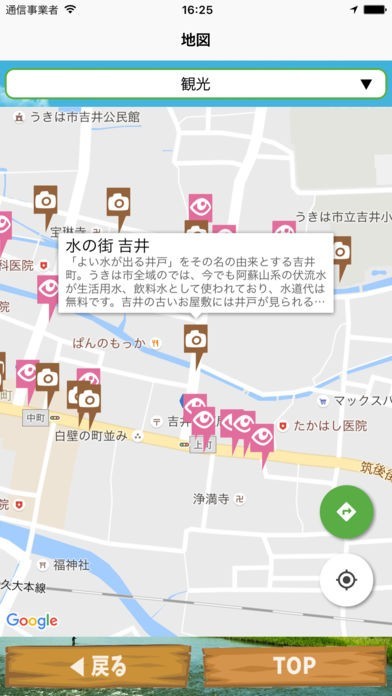 うきはの情報を見つけて、場所を調べて、電話をかける事ができるので、うきは観光にとっても便利なアプリです。