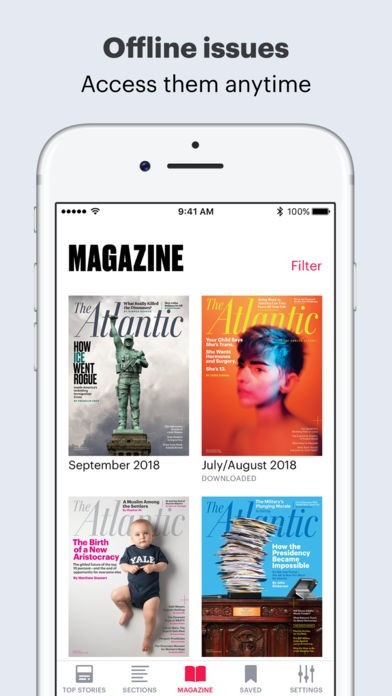 政治経済、文化やテクノロジーなどの時事ニュースを取りあげるアメリカの雑誌The Atlantic Magazineを携帯やタブレット端末でいつでもどこでも、読むことができます。雑誌を持ち歩かないので重くありません。