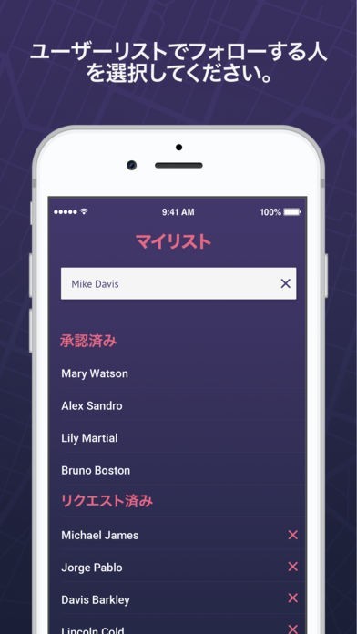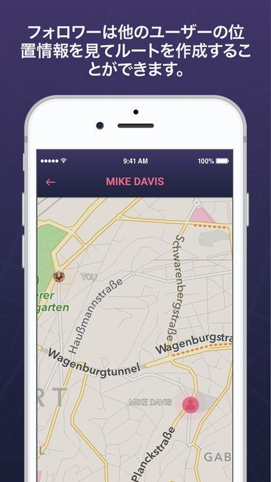 - ユーザーリストにある人の居場所をリアルタイムで追跡。