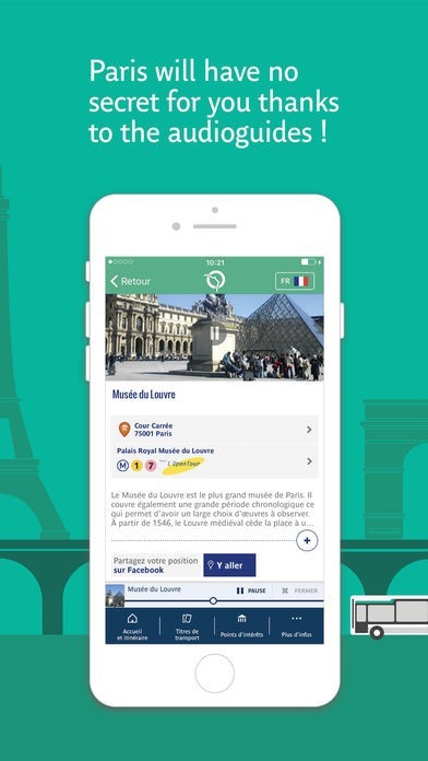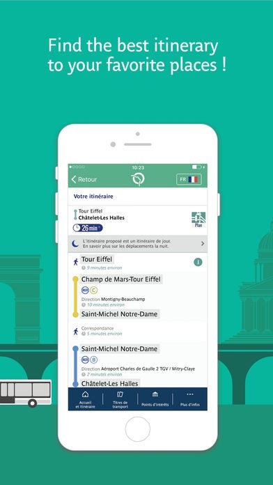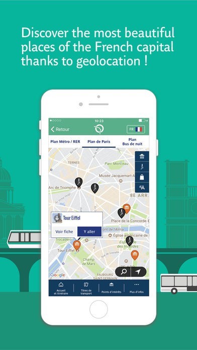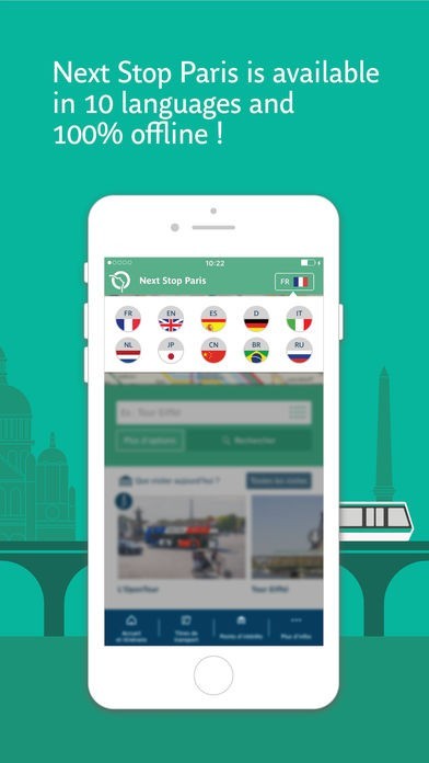 App Storeより引用Next Stop Parisは、パリとイル=ド=フランスの観光案内アプリケーションです。オフラインでも利用することができる、10ヶ国語対応のこの無料アプリは、短期滞在の旅行者向けにデザインされています。パリと郊外の代表的スポットの観光に役立つ、さまざまなサービスをご利用いただけます:- パリの一番人気の観光スポットを一目でチェックし、GPS機能で現在地に最も近いスポットを簡単に検索。- 公共交通機関(メトロ、RER、バス、トラム、Noctilien)を利用した目的地までのルート*を検索。- 駅とパリの空港間を結ぶ経路(ロワシーバス、オルリーバス、オルリーヴァル、Go C Parisを含む)を事前にチェック。- お気に入りの観光スポットに関する便利な情報を確認。- パリ、メトロ/RER、夜間運行バスの地図を、オフライン時も表示。- 乗車券のカタログとシミュレーターを使って、滞在に一番適した乗車券を選択。- 迷いがちなメトロで役立つアドバイスや番号を案内。- 対訳付き日常会話フレーズを使って、パリジャンになった気分に。Next Stop Parisで、エッフェル塔、ルーブル美術館、サクレ・クール寺院、ヴェルサイユ宮殿、パリ・ディズニーランド®など、パリの見どころをすべてご覧ください!*リアルタイムの交通情報はルートに反映されません。