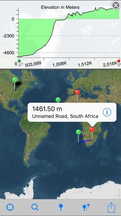 • Get elevation of any place on earth by: 1) touching the location on the map; 2) search by address/name