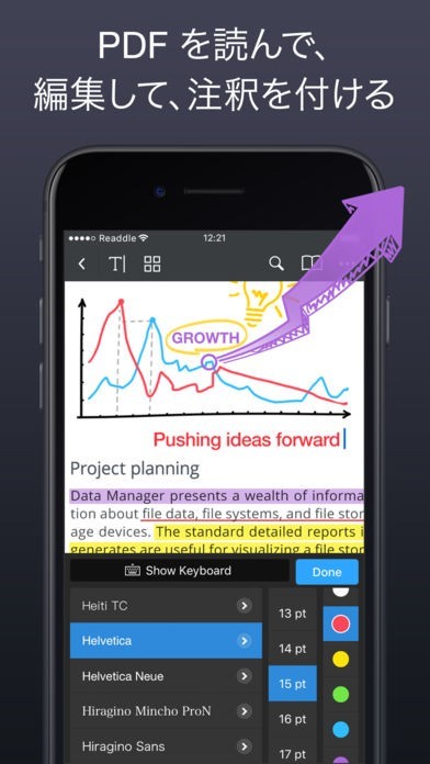 PDF Expert には、iPad と iPhone 用アプリとしては最高級の PDF ビューアが搭載されています。テキスト検索、PDF リンクやアウトラインにも対応。大きなファイルでも、パスワード保護さされたファイルでも開くことができます。また、テキストデータ抽出も問題なくこなします。