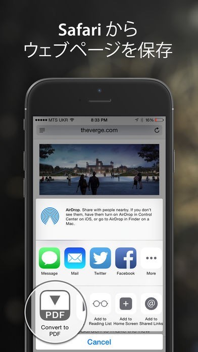 SafariからウェブサイトをPDFで保存することもできる