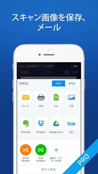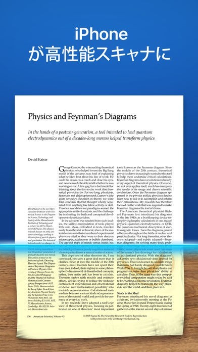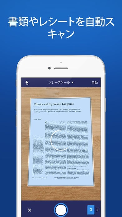 レシートや書類をデジタルスキャンできるアプリで、自動的にトリミング加工してくれるだけでなく、歪みの補正まで行ってくれる優れものです。複数ページであってもスキャンした後、PDFやJPEG に変換してメールなどで変換することができます。そのためビジネスの場面で活躍するでしょう。書類だけでなく、手書きのメモや契約書のサインなども同様にスキャンすることができます。一定の人にのみファイルを公開したい時は、パスワードをかけることも可能なので安全面も安心です。