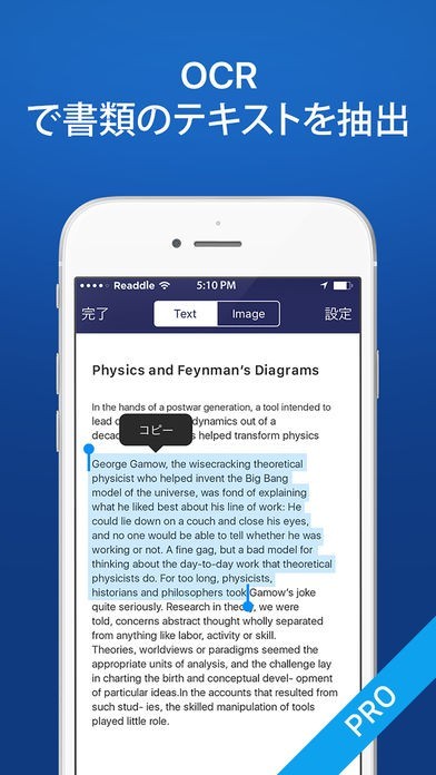 スマートフォンのカメラで撮影すれば、すぐに書かれている内容を認識し、PDFに変換することができます。解像度が高いので、仕事や学校で必要な文書を整理したい時に有効です。