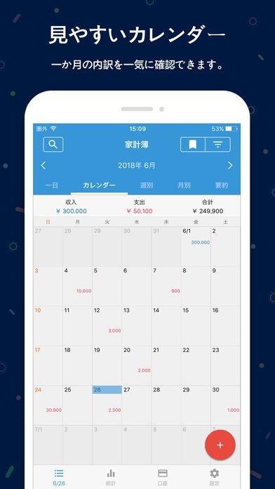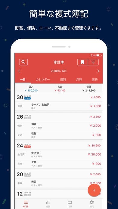 家計簿が中々続かなくて困っていましたが、操作が簡単にできるこちらを見つけてからは付けられるようになりました。見やすくできていますね。