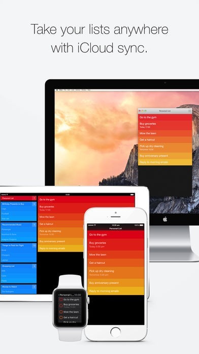 icloudに同期ができるので、他のデバイスでも同じタスクを確認することができ、仲間と共有したり、自身の移動やデバイス変更でも、今までのタスクをすぐに確認することができます。