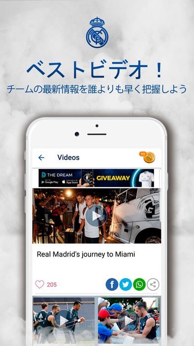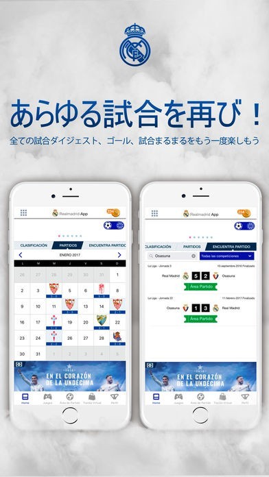 スマートフォンでレアルマドリードの試合のハイライトやベストプレイ動画を試聴することができるようになっていて、多彩な角度からの動画再生を楽しむことが可能となっています。