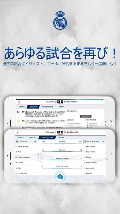 スペインのプロサッカーリーグ、リーガエスパニョーラのレアルマドリードの公式アプリとなっていて、動画やニュースなど様々なコンテンツを利用することが可能となっています。