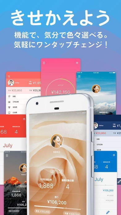 家計簿のデザインを、自分の好みに合わせて自由に変更することができます。アプリを開くのが楽しみになるような素敵なデザインが揃っており、快適に家計簿をつけられます。