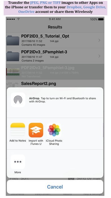 * Transfer your converted files to any other software on the iPhone that can accept JPEG, PNG or TIFF files
