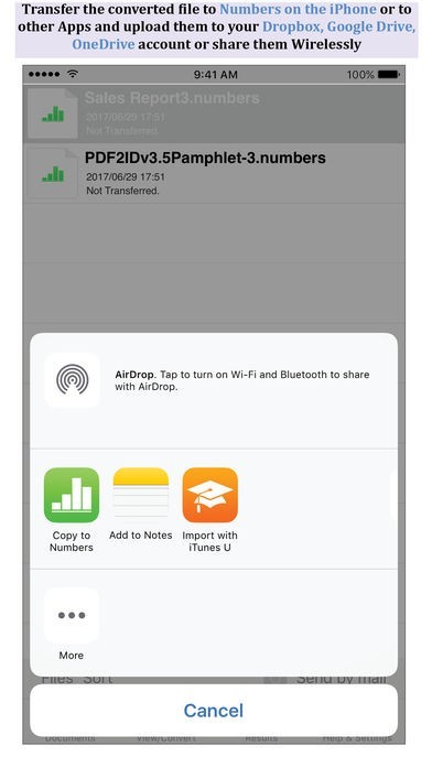 * Transfer your converted files to any other software on the iPhone that can accept Numbers files.