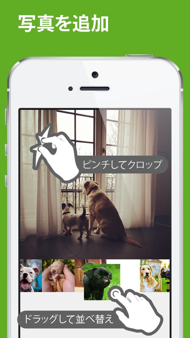 - 各写真をスワイプ、ピンチして適正にクロップ