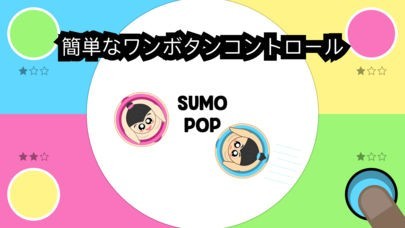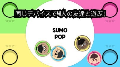 App Storeより引用相撲ポップは、シンプルで楽しいローカルマルチプレイヤー相撲ゲームです。一人のデバイスで4人の友達と遊んだり、AIの相撲のマスターと対決しましょう。3点を最初に獲得したプレイヤーの勝ちです!