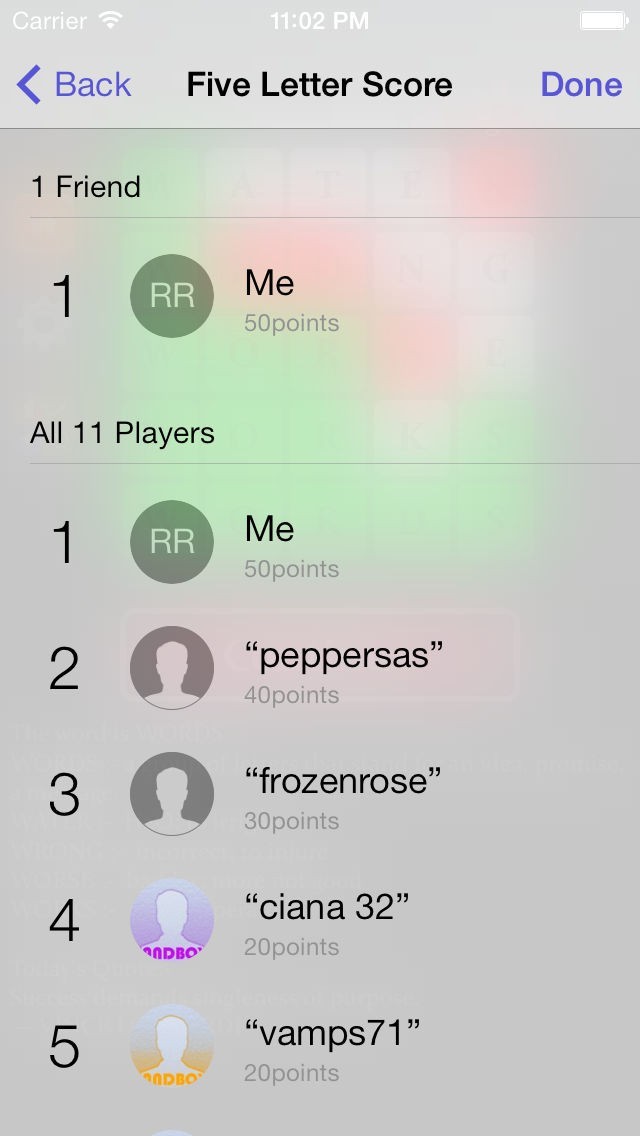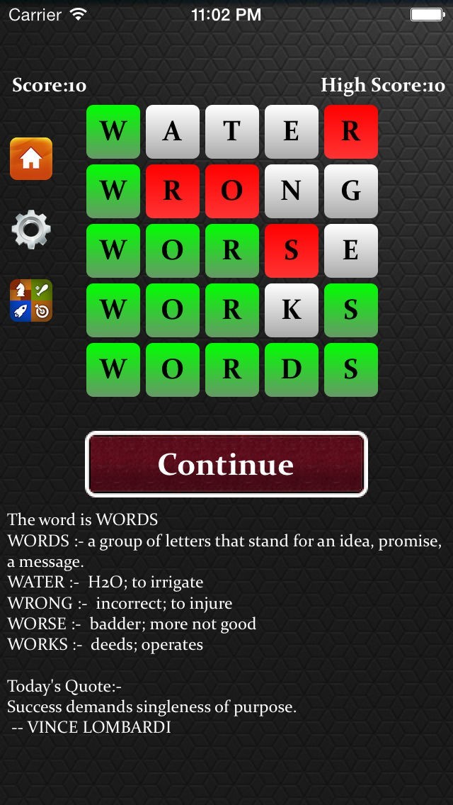 プレーヤーが解答すると手紙の色が変わります。答えが合っていれば緑、間違っていれば赤くなるので、一目で正解がわかります。画面上に緑色を増やせるように頑張ってください。