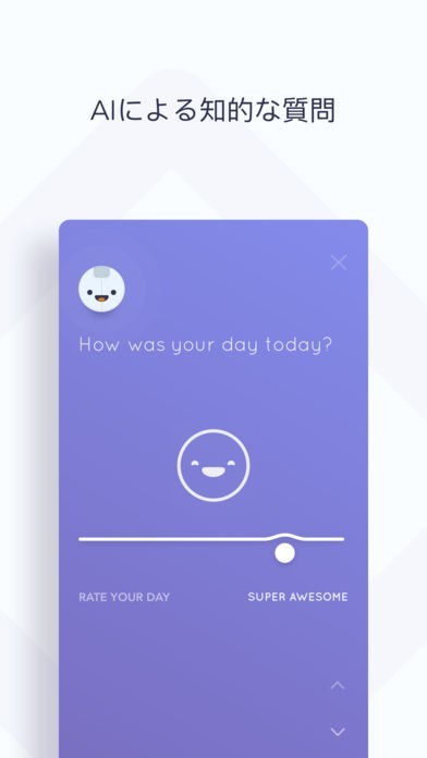AIからの質問に答えてみましょう。AIから毎日、異なる質問を受けることができます。今日あった出来事、今日感じたことなど、一日を振り返ることができます。寝る前にぜひ使ってみましょう。