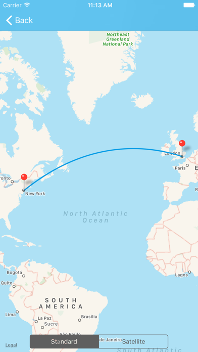 飛行機の到着時間、移動する距離の予定が分かります。オフラインでも使えるので飛行機に乗っているときでも到着予定などの予定が把握でき、到着後の予定をたてやすくなります。