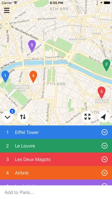 目的地を入力して検索する際に一つずつ地図上で表示されるのを待つ必要はありません。事前に探したいスポットを入力しておけば自動で地図上にピンを立ててくれるため便利です。