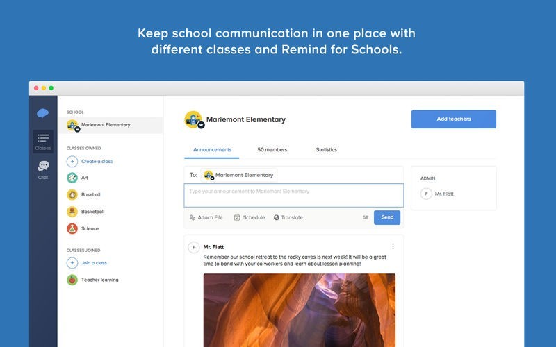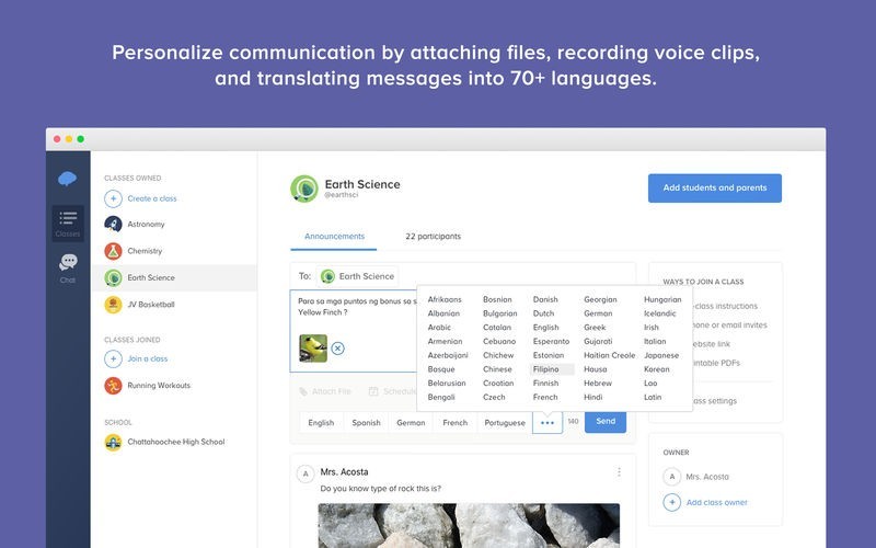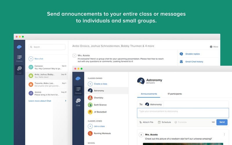 * Flexible features: Send a class announcement or personalize a message, and choose when you start the conversation with one-and two-way messaging.