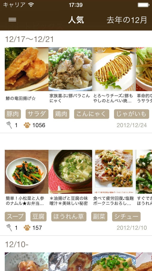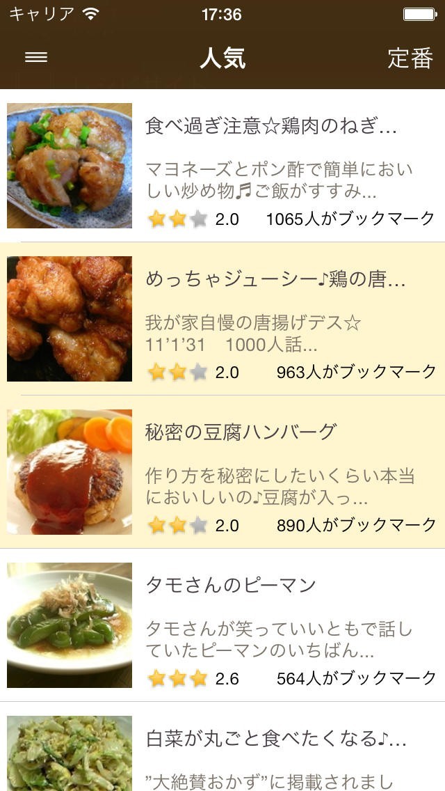 ブックマークされた数や評価が高いレシピを見ることができます。