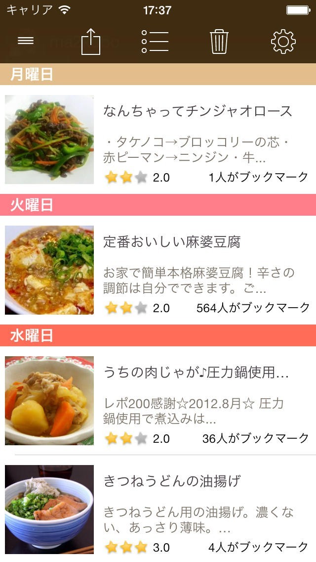 自分で保存した週間レシピはもちろん、別のユーザーが公開した週間レシピも見れるので、献立を考える手間も省けます。