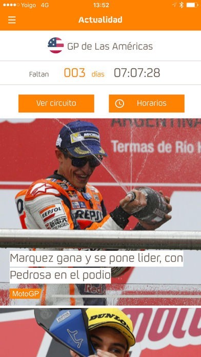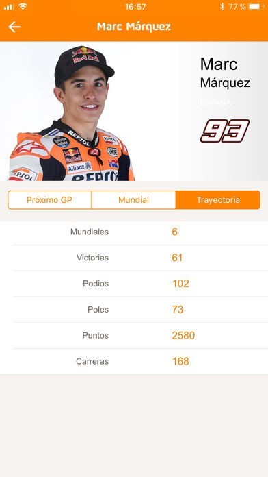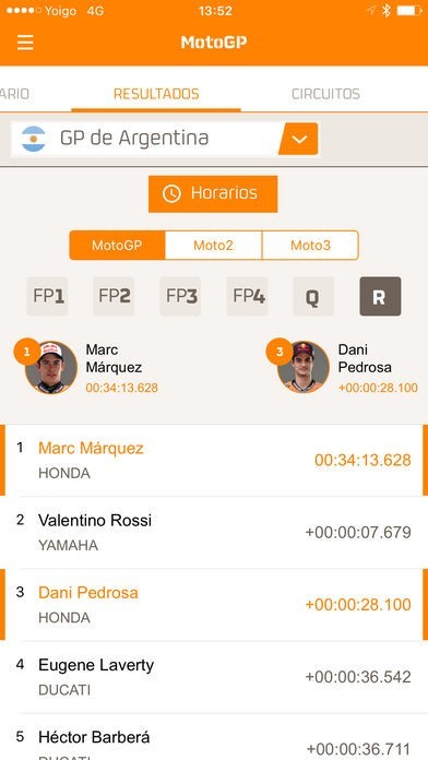 App Storeより引用El Equipo Repsol, liderado por Marc Márquez y Dani Pedrosa, cuenta con una experiencia de más de 45 años en el Mundial de Motociclismo. Con esta aplicación podrás seguir en directo los entrenamientos y las sesiones clasificatorias de cada categoría (MotoGP, Moto2 y Moto3) consultando la sección “Resultados”. Los domingos, como novedad, vivirás en directo gracias al “vuelta a vuelta” lo que ocurra en cada carrera de MotoGP. ¡No te pierdas toda la emoción de la categoría reina al minuto!.