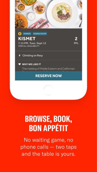 「Resy」は、人気のレストランをiPhoneを使って予約することができるアプリです。登録されているレストランの数が豊富で地元の有名店も気軽に利用できます。お店の前で列に並んでまったり、直接電話をかけて予約をする必要はありません。アプリからボタンをタップするだけで予約が済ませられるお手軽感が魅力的です。