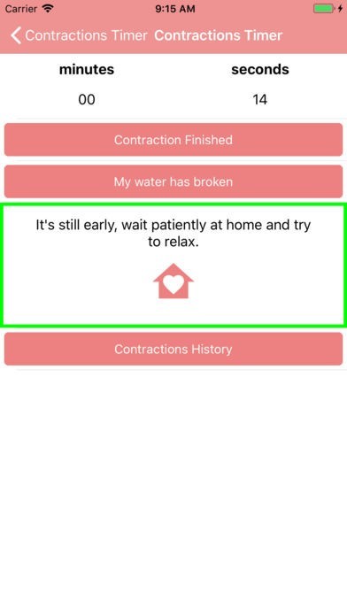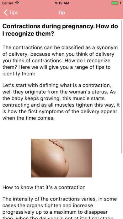 2.収縮カウンター:これは、最高の妊娠中のアプリの主要ツールです。それにより、収縮を数えて登録することができます。アプリが検出した収縮とその間隔に基づいて、配信のために病院に行くべきときに通知することができます。 10分ごと、5分ごとなどに収縮があっても、それを書き留めることが重要です。