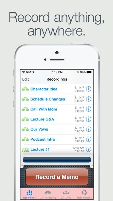 App Storeより引用The original voice and call recorder for iOS. Recorder is your one-button audio recording solution. Record memos, discussions, interviews, and ideas on your iPhone. Use it as a voice recorder or a sound recorder. Record for seconds or hours.