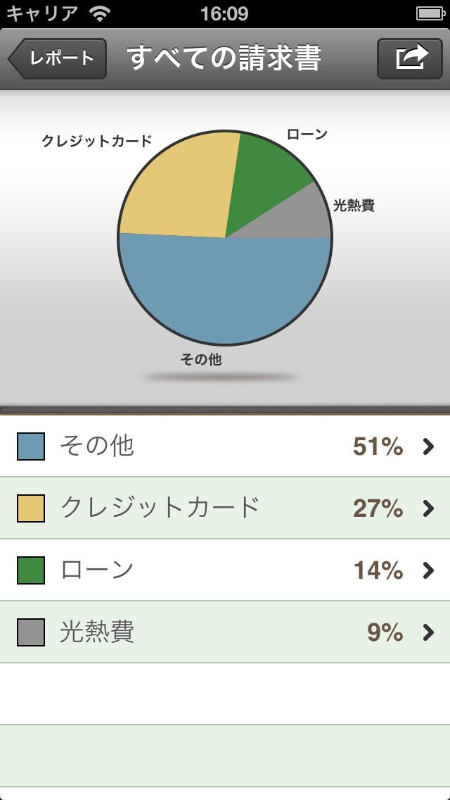お金がどこに行き、何を節約できるか、視覚的に表示します。各グラフをメールで送信したり、AirPrintを使って印刷することができます!
