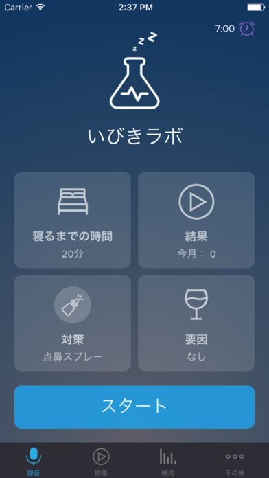 睡眠時にしているいびきの強度や大きさを録音、分析して四段階に分けて表示してくれるいびき対策アプリです。自分がどんないびきをしているのかをわかりやすく把握することができ、アルコールを摂取したときや風邪や鼻づまりのときなど、どのような要因があった時にいびきが変化していくのかを調べることができます。また、単にいびきを録音するだけでなく、要因によっていびき対策を提案してくれ、その改善もこのアプリでモニタリングすることができます。いびきを指摘されても自分ではどうすればいいのかわからないとき、一度このアプリを試してみてください。