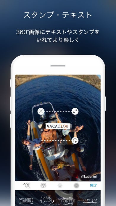 ・スタンプやテキストを入れて、360度をよりいっそう楽しく表現することが可能です。