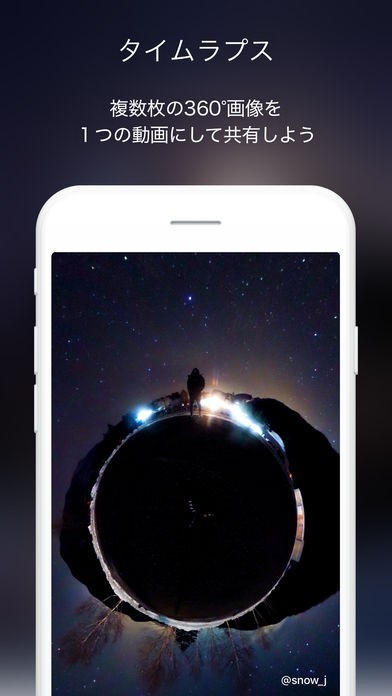 ・複数枚の360度画像を組み合わせて、タイムラプス動画を簡単に作成できます。