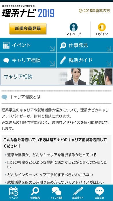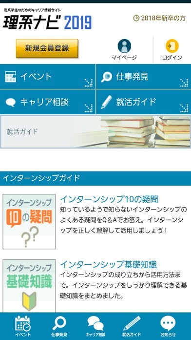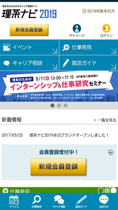 理系のためのインターンシップ・就職情報『理系ナビ2019』(2019卒向け)のスクリーンショット