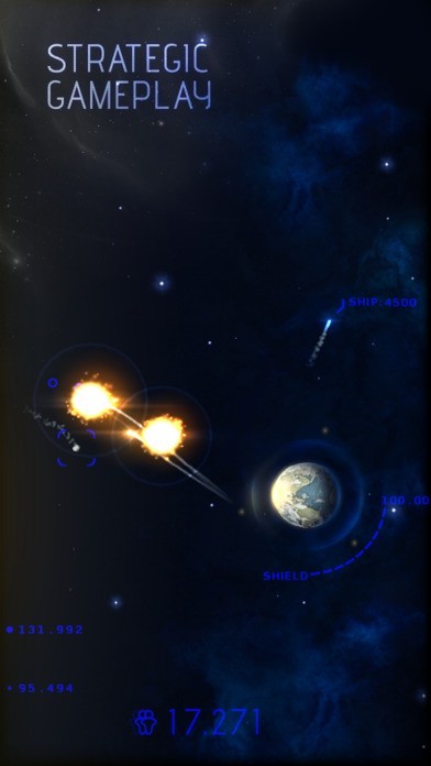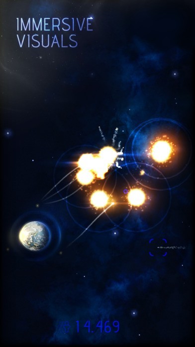 Tap your screen to fire missiles at incoming asteroids, watch the immense explosions push away or shatter their targets. Aim carefully because the more missiles explode the more panic is caused and the slower earth's evacuation progresses. The moment you can no longer hold of the barrage of asteroids you witness the end of earth as it has never been shown in any mobile game.