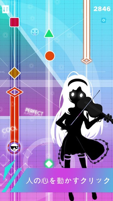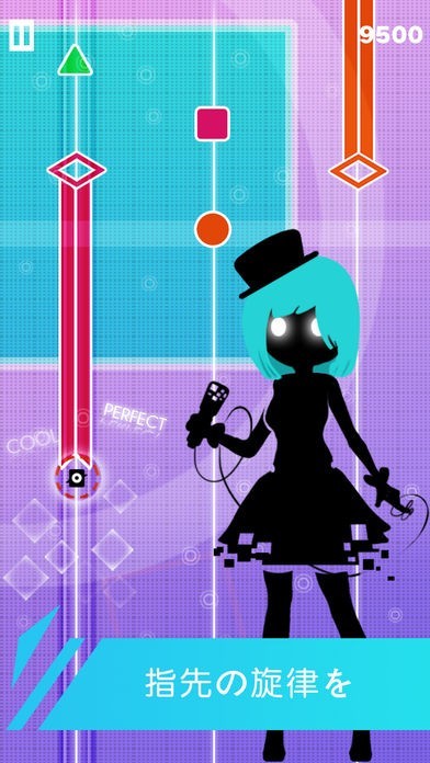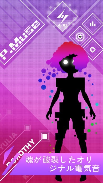 「Project: Muse」での主な操作はタップだけ。音楽と一緒に丸・三角・四角といったマークが流れてくるので、タイミング良くタップしてください。収録されている音楽はどれもオリジナル。プレイヤーの気分を盛り上げてくれます。