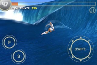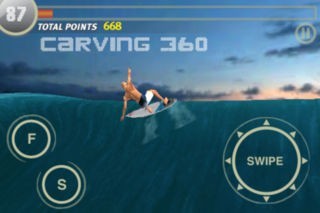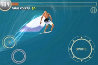 Use your finger to make directed swipes on screen to perform maneuvers, such as cutbacks on the wave and grabs and flips in the air.