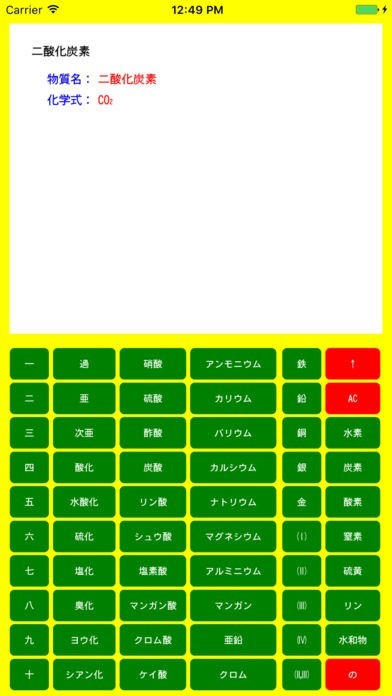 日本語名はわかるけれど、化学式が分からないという問題でも大丈夫です。日本語名を入力すると、化学式が出てきて、分子量または式量を自動的に計算してくれます。化学式から日本語名を出すこともできます。