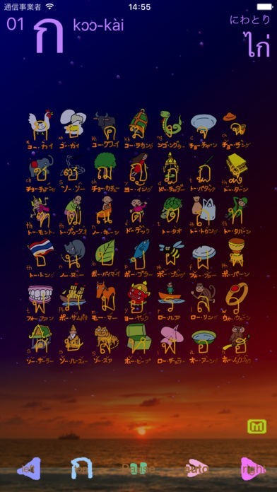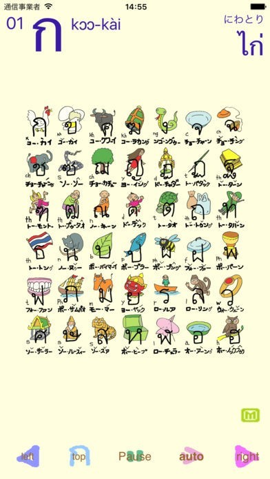 App Storeより引用タイのコー・カイ表を表示します。(音声は含まれません)