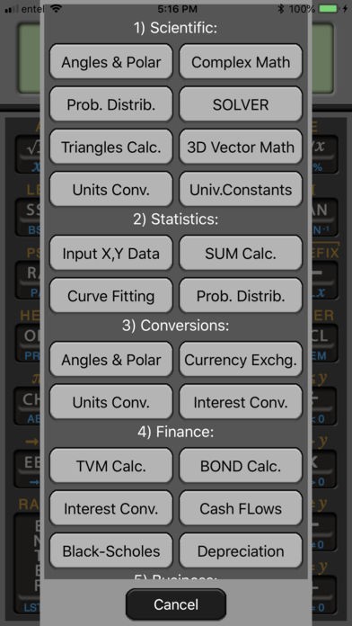 The 11CX version has a complete set of Menus & Features that expand the original calculator functionality and usability: