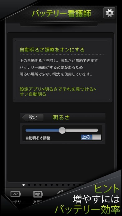 自動明るさ調整で自動でバッテリーの負担を減らせる