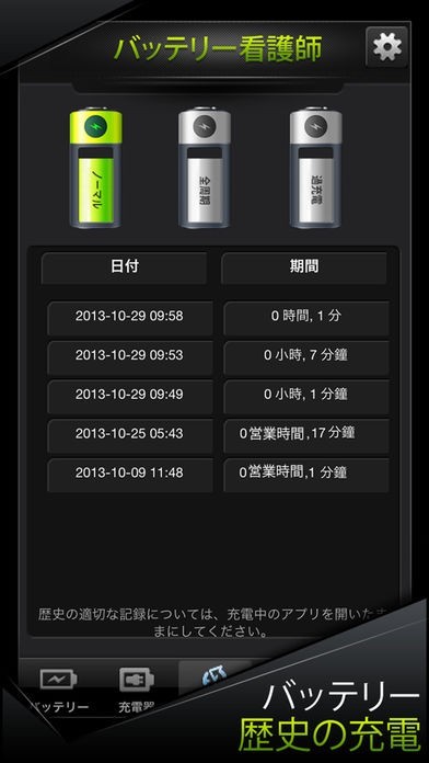 充電の歴史を見る事で使っているデバイスの充電を追跡できて3つの充電を使ってバランスよく充電ができているかを確認する事でさらにバッテリーの寿命を伸ばしていくのがおすすめです。