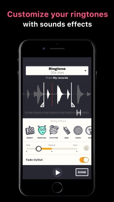 好きなサウンドを選んで、お好みの効果(火星、ロボット、エコー...)でカスタマイズ。お好みのアラートに設定.. それだけです! 今までにない程、着信音の設定は簡単です!