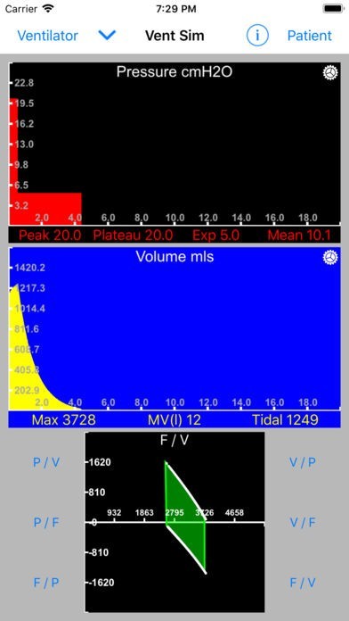 VentSim allows you to apply ventilator settings to your respiratory system model and then generates pressure, volume and flow signals that are displayed on your iOS device.