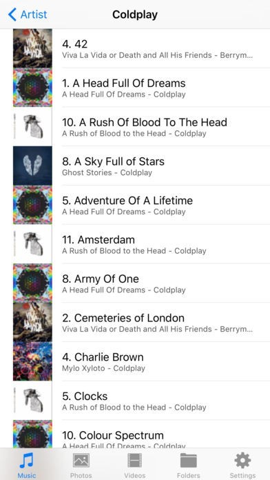 - Browse the media server content and select a media (music, photo or video) you want to play.